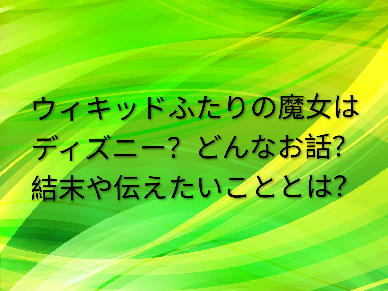 ウィキッドふたりの魔女ってディズニーっぽいけど、ディズニーじゃないの?という疑問から、どんなお話なのか、結末や伝えたいこととは何なのか?